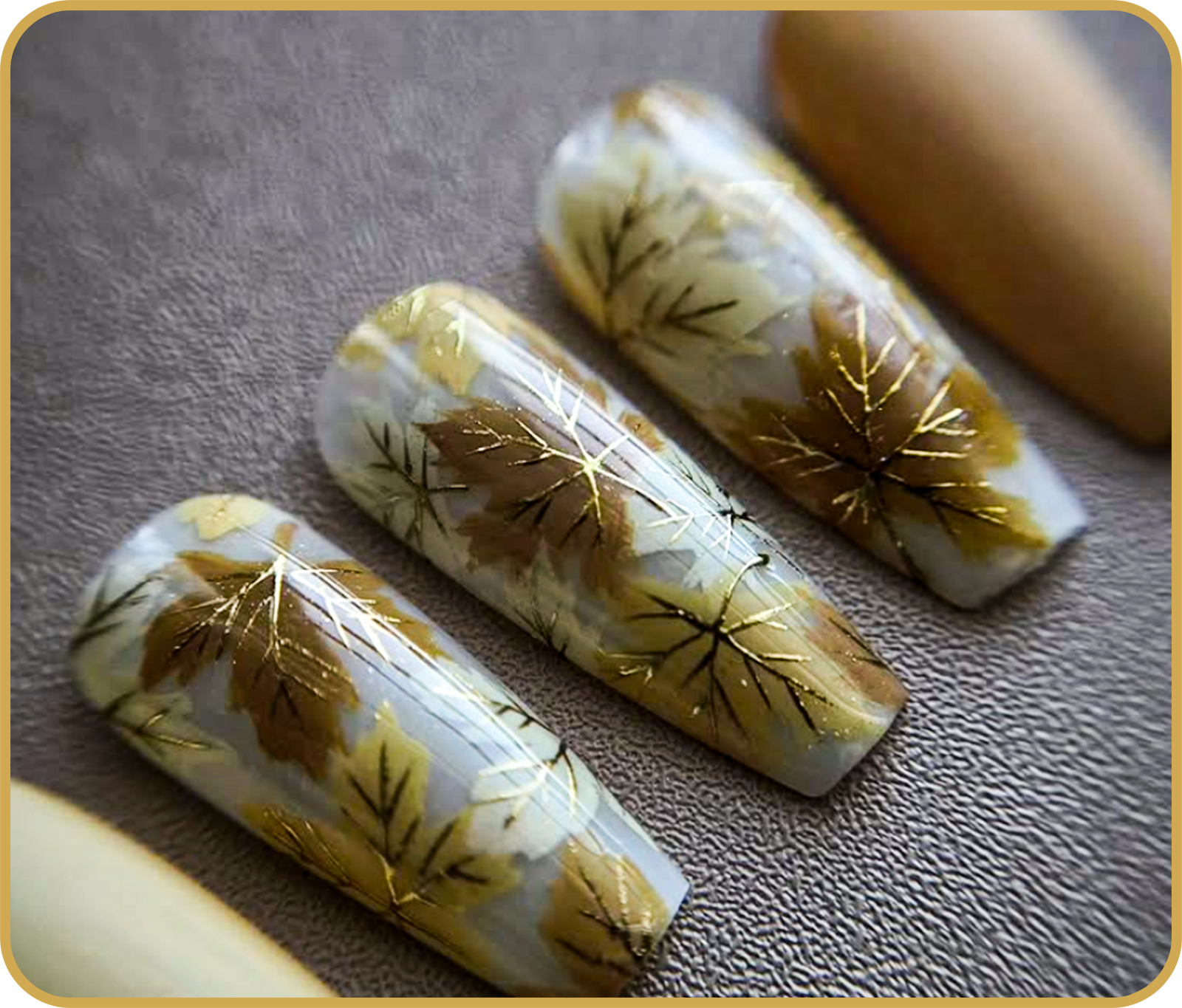 Eleve o ticket com 12 designs elegantes em tons terrosos, marmorizado, folhas estilizadas e metalizados quentes. Aprenda composições versáteis e acabamentos matte para um visual sofisticado de meia‑estação.